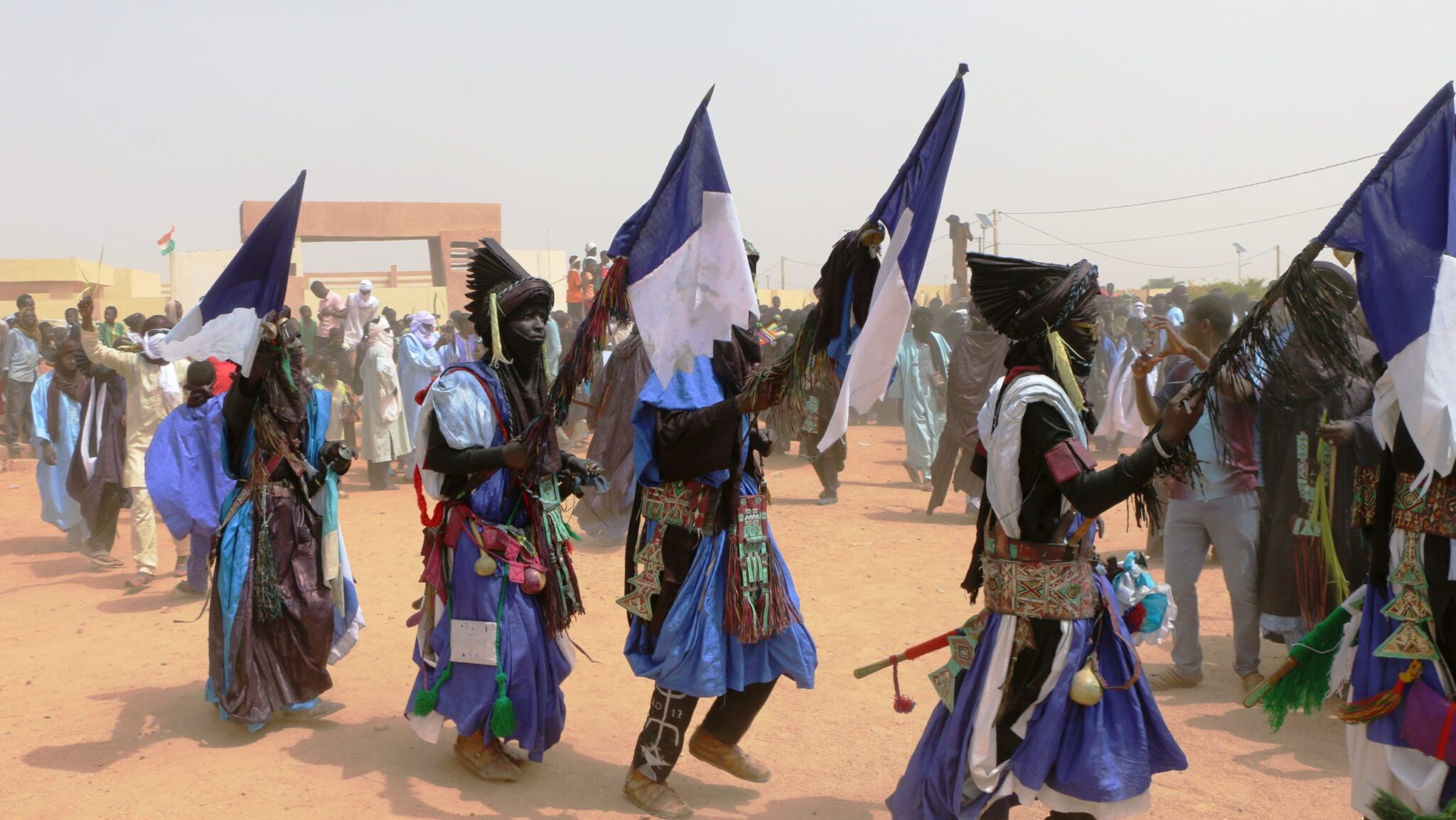 Etant une fête populaire aux allures carnavalesques, c’est à une véritable parade des habitants que l’on assiste. Les filles se font toutes belles, parées de bijoux de valeurs, portant des pagnes et foulards et maquillées comme lors des grands jours. Les hommes quant à eux esquissent des pas de danse rythmés par les tambourins, habillés de grands boubous colorés avec des ceintures décorés. Naturellement, on parle d’Agadez, le turban ne manque pas avec des sabres ou lances.